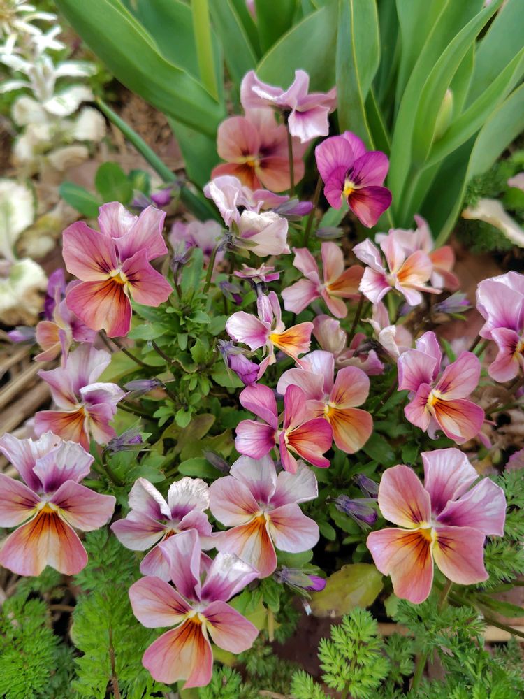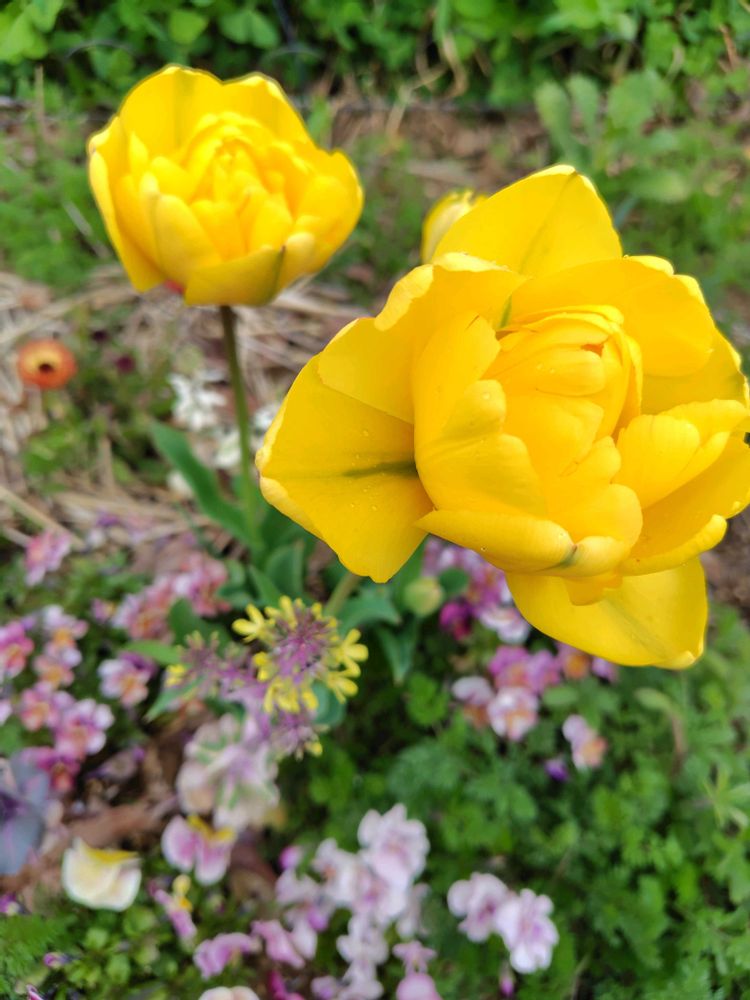 畑のチューリップ💛とビオラ‥なごみももかしんしんも可愛く咲いてます🥰