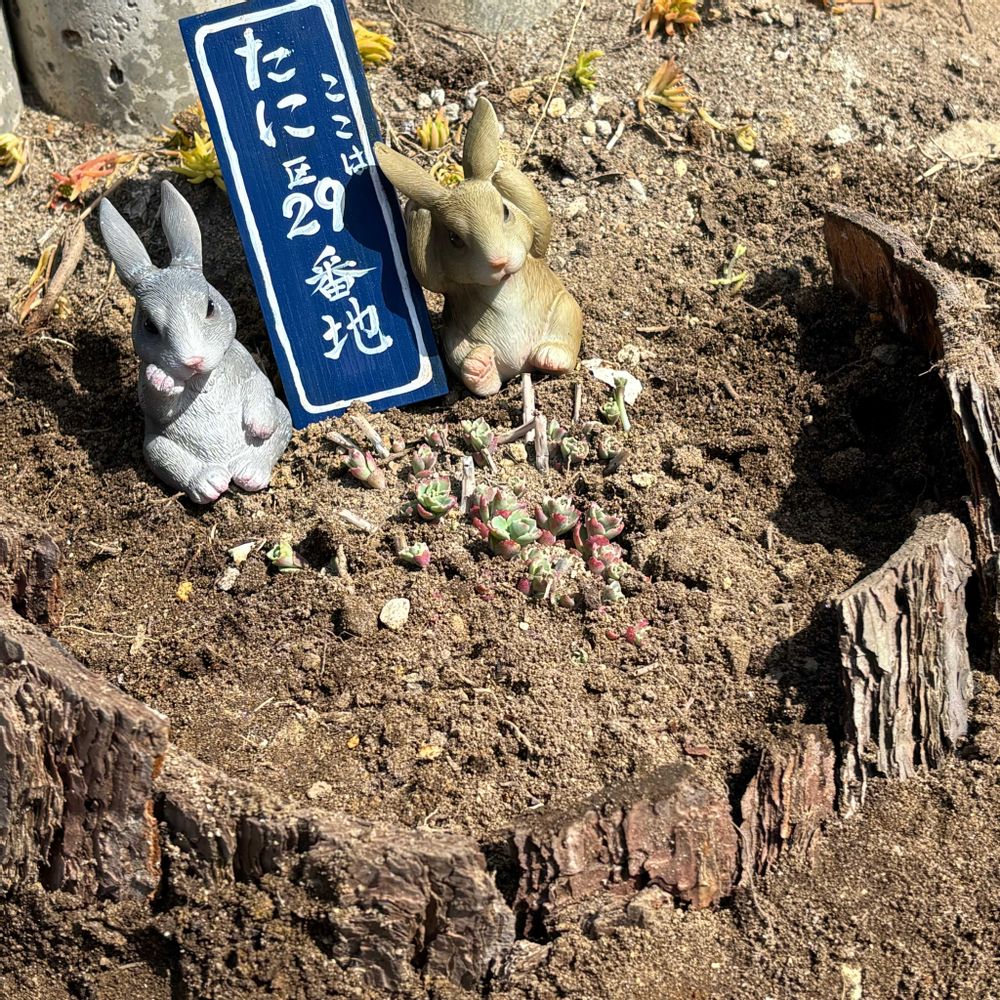 切り株の樹皮が剥がれてたので、囲ってみた🐰💕