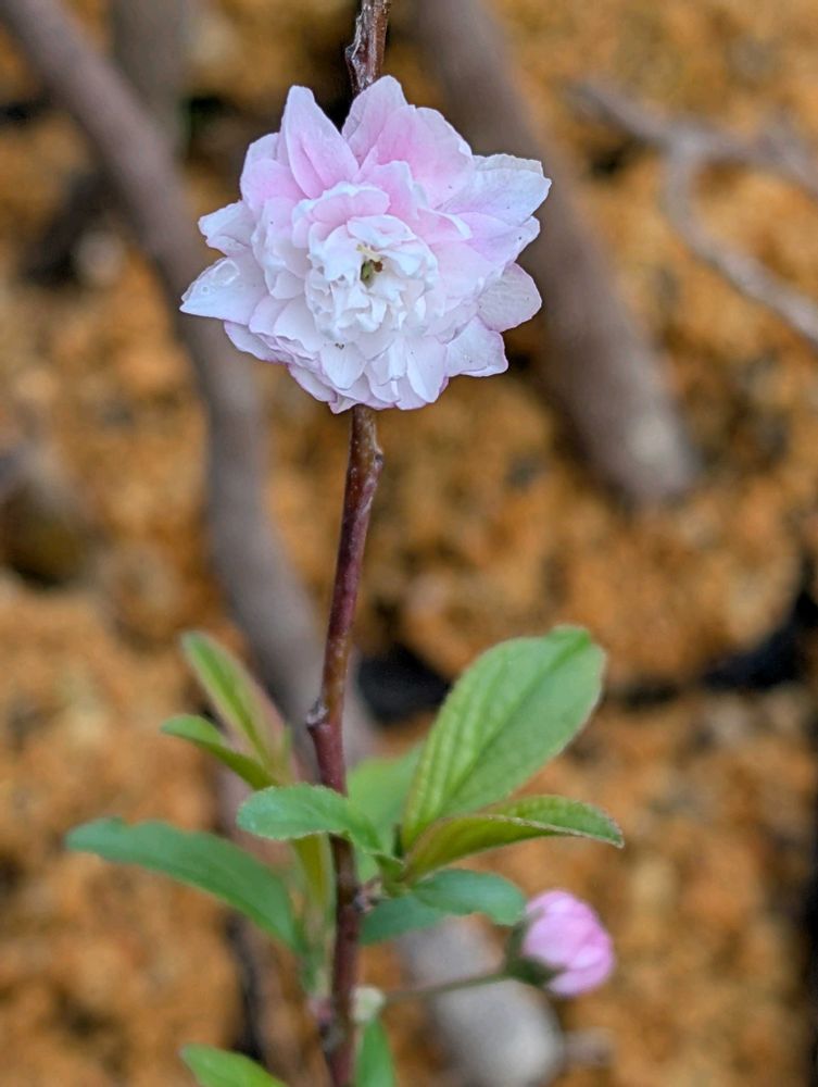 小さく、八重咲き 桜と名前はつきますが細い枝が地際が立ち上がり🌸🌸とても お気に入りなんです。