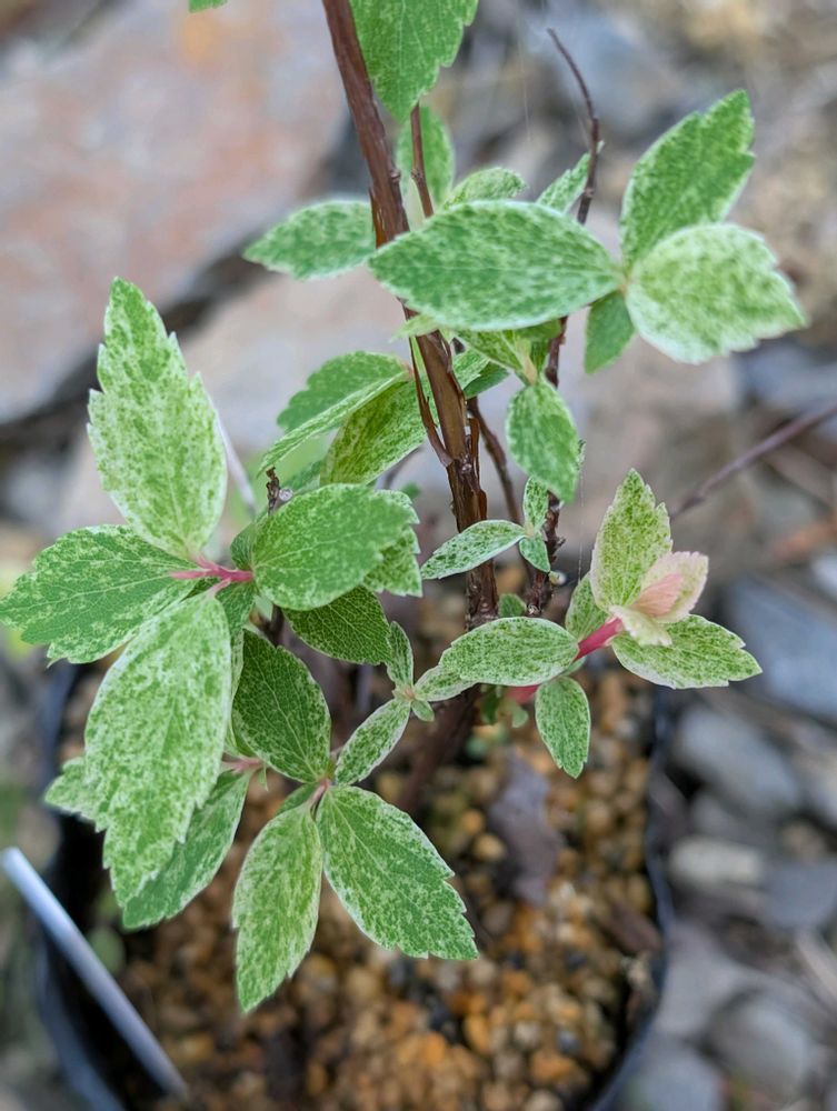 花が咲いてる〜ニワウメの札を付けたのは爺 間違えた様だ?コデマリとユキヤナギも葉が出ても識別は難しい気が付いたのは花が咲いて葉が出るのがユキヤナギで葉が出てから花が咲くのがコデマリ?それとも挿し木した為に時差が出来た?花が無くなったらどうするコデマリのほうが鋸歯の切れ込みがシモツケに似て深いかも時々カエデ葉も出る?難問デスね〜