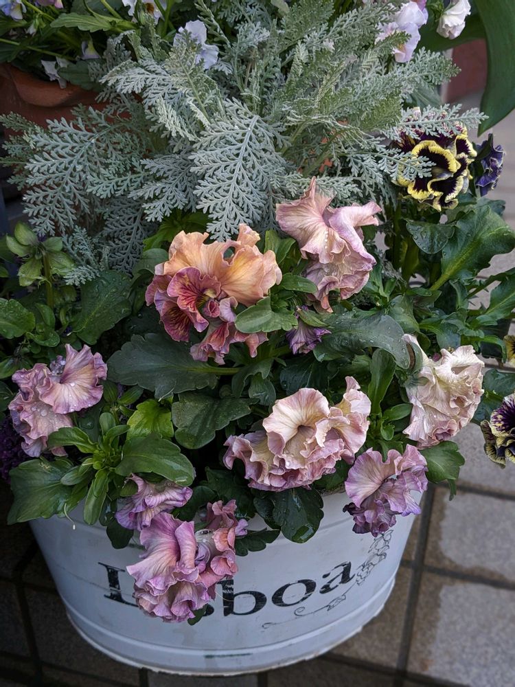 フリルパンジーのパルムディールとシルバーレースを一緒に植えただけ😅ですが…