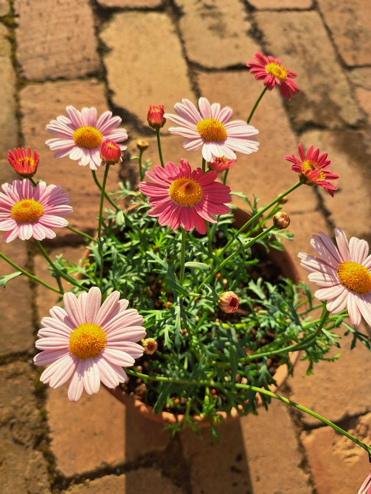 一株にピンク系の花が咲いて、1色じゃない! もっと大きくなぁれ🧙