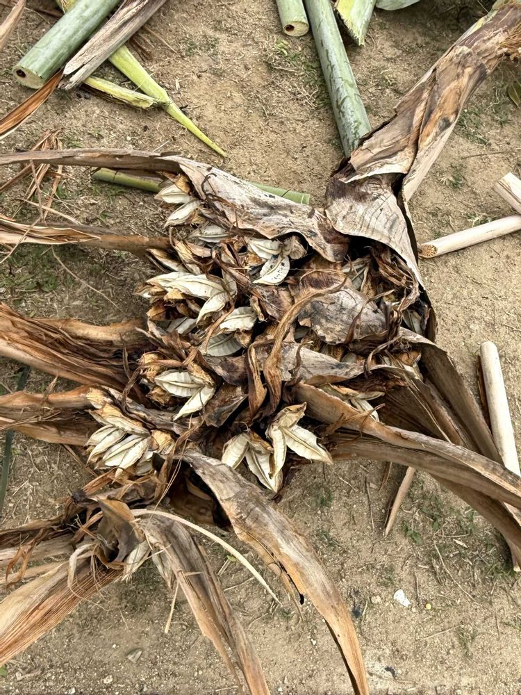 →切った枝がたくさんまとめてあったので、お兄さんに頼んで鞘の中を見せてもらいました👀