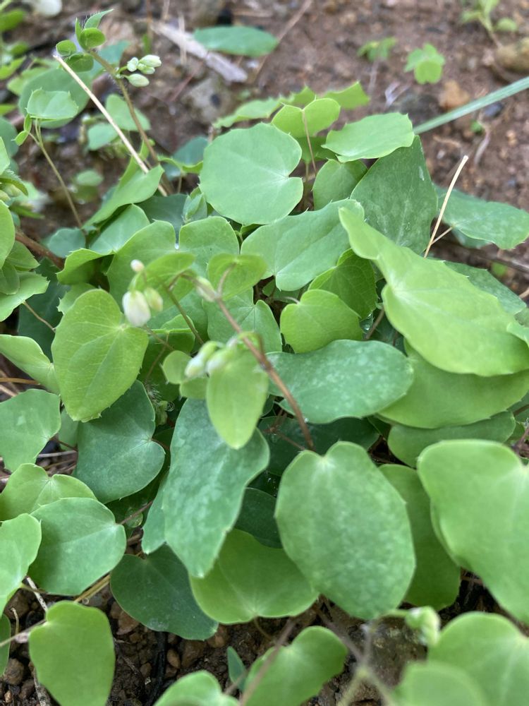 バイカイカリソウ、1センチくらいの小さな花です。うつむきかげんに咲いていて、覗き込みたくなりそうな、覗くのは無理ですが😅可愛らしさです🥰