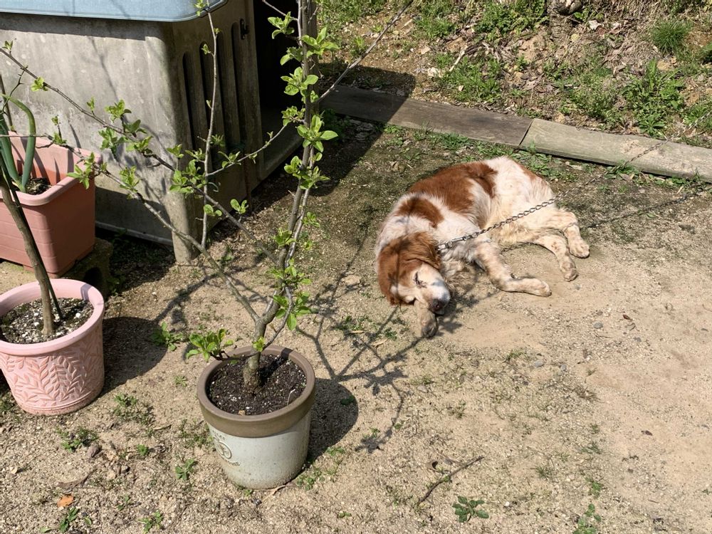 朝のお散歩でカールくん🐕のいつもの水飲み場所で、スミレの白花が咲いてました😀久しぶりに出会えたけど、いやぁ今まで気がつきませんでした😅父ちゃん引っ張るとお水が飲めないよ❗️💦お昼に見上げるとコウノトリが飛んでました😀カールくん🐕は日向ぼっこ😅