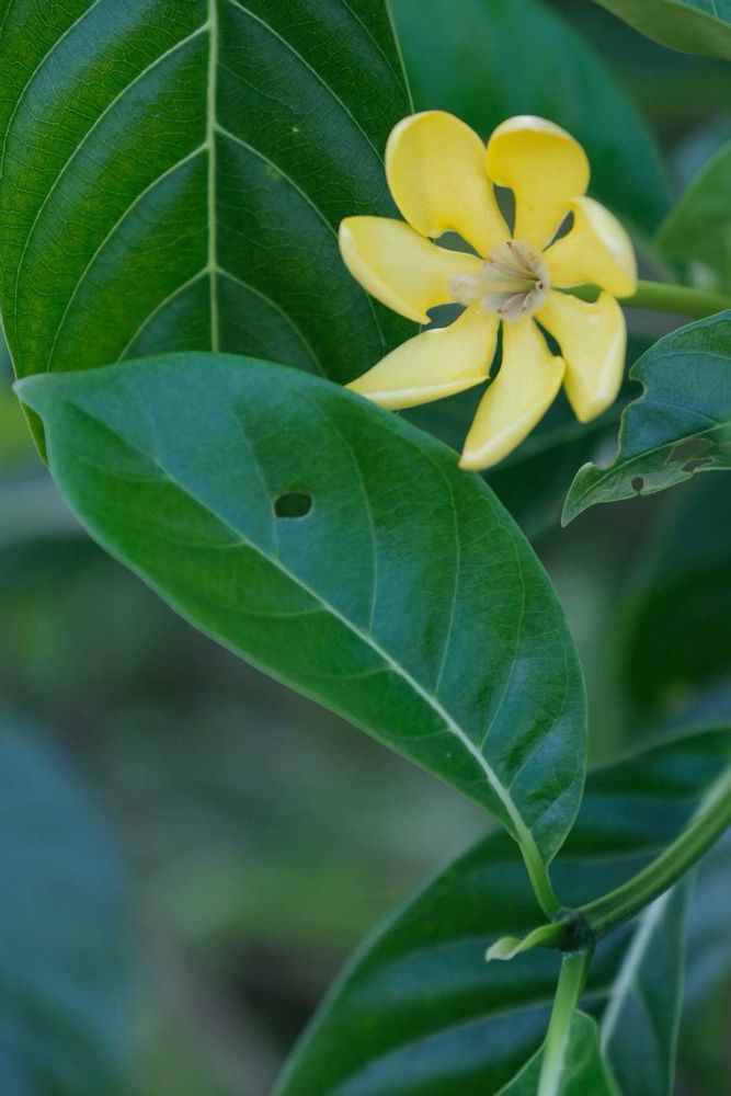 シーズンの終わり(と言っても2ヶ月毎に咲いているのですが。😅)咲き残ったキバナクチナシ。白く咲いて黄色く色づいてオレンジ色になります。朝だったので色が薄いですね。