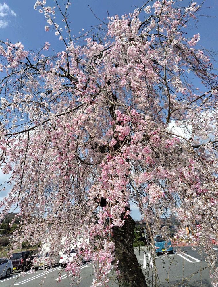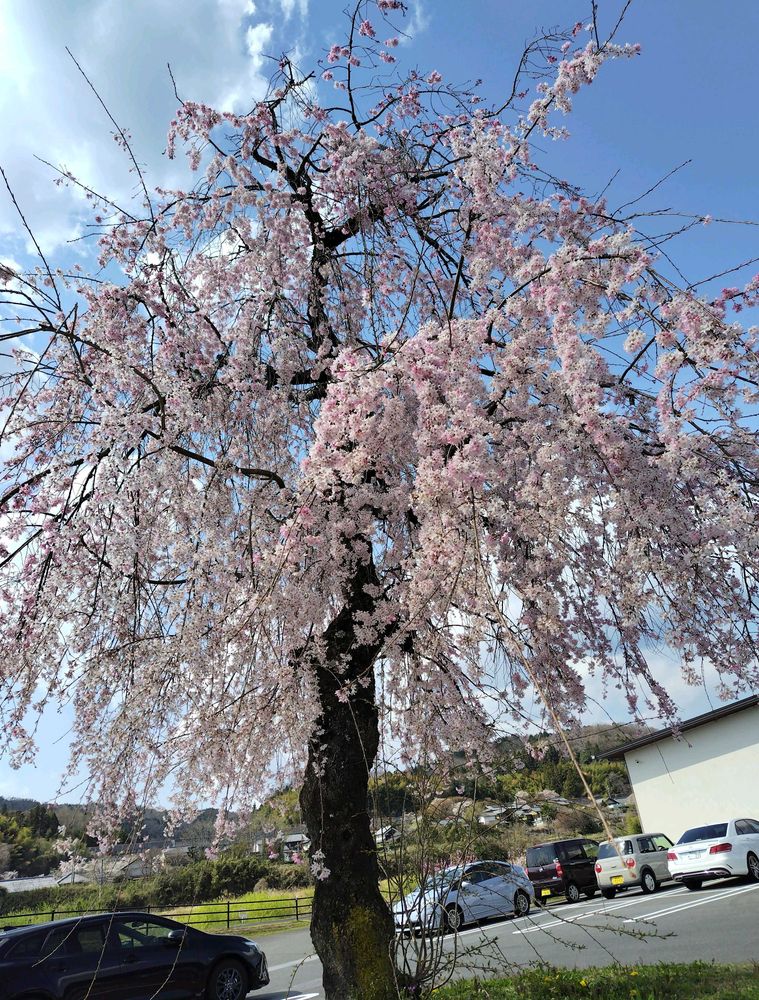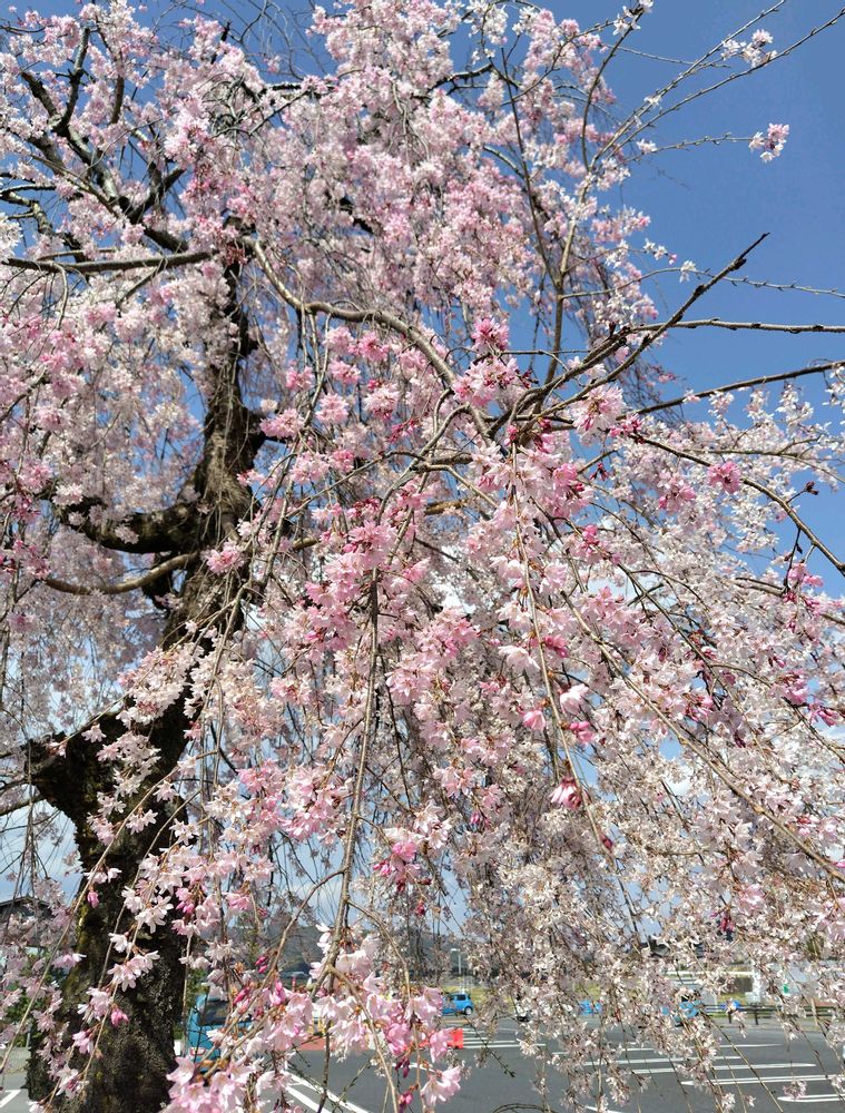 農産物直売所駐車場にある枝垂れ桜がちょうど満開でとても綺麗でした🌸💮🌸💮🌸✨