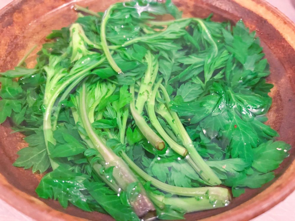 アクの少ない新芽さんだからサッと湯通しして水にさらしてザクザク切ってお塩まぶしてご飯に混ぜてヨモギの混ぜご飯