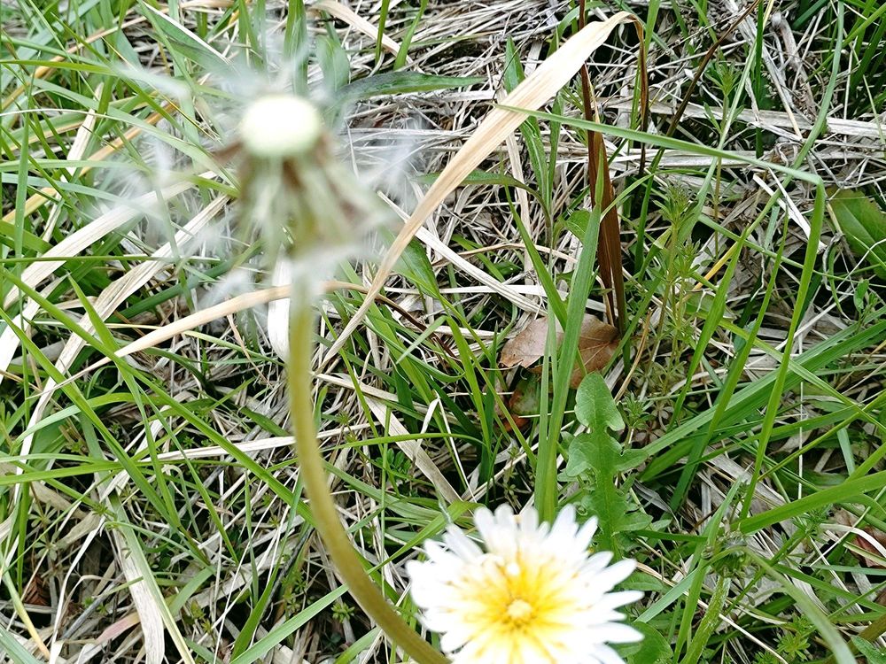 白いたんぽぽは、子どもの頃は田んぼの畔や畑にいっぱい咲いていたのですが、今では、黄色のお花しか見なくなりました(´;ω;`)