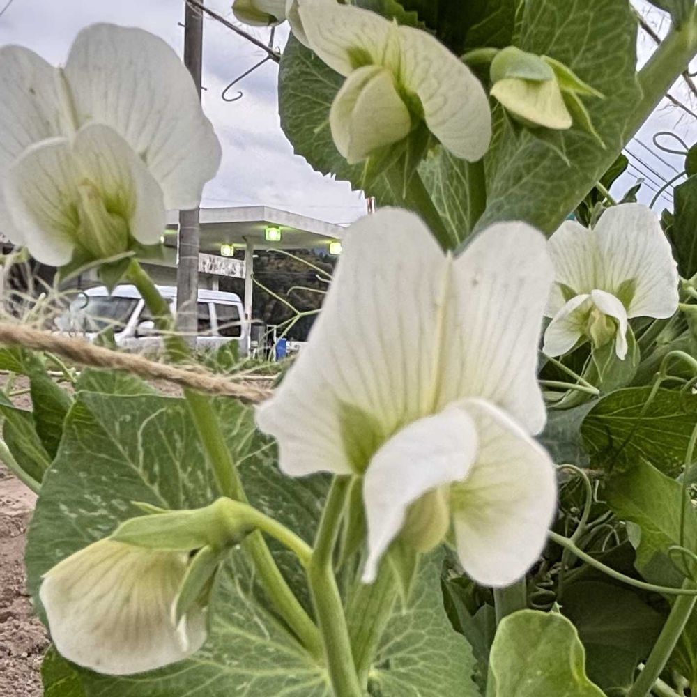 友達の畑.1️⃣そら豆のお花2️⃣🫛さやエンドウのお花3️⃣シャキーン、、きをつけい?!している長ネギさん、、立派〜!🫡