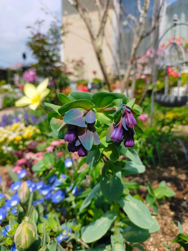 秋に種まきして育てた『セリンセマヨール 』が咲きました✨うつむき加減に咲く青紫の花がステキです💖他にない草姿なので、庭に入れるとグッとオシャレ感が増します✨✨