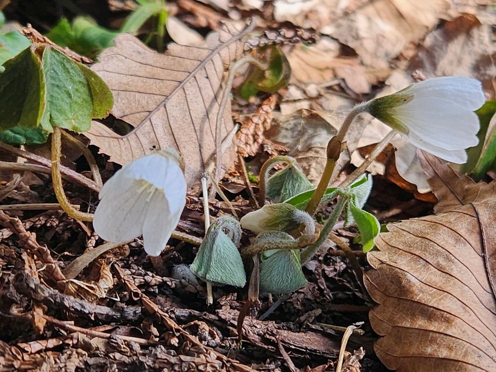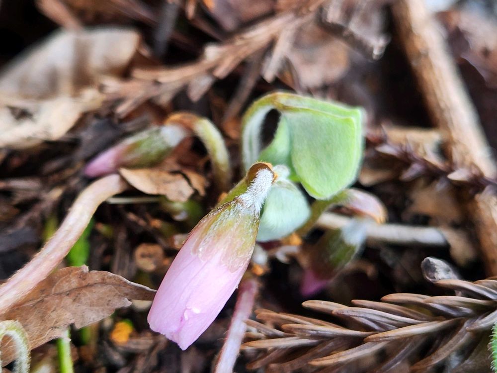 春になり2回目に訪れた今日はまだミヤマカタバミが少しだけ🤍⸝⋆⸝⋆ピンクはまだ一箇所で蕾🩷