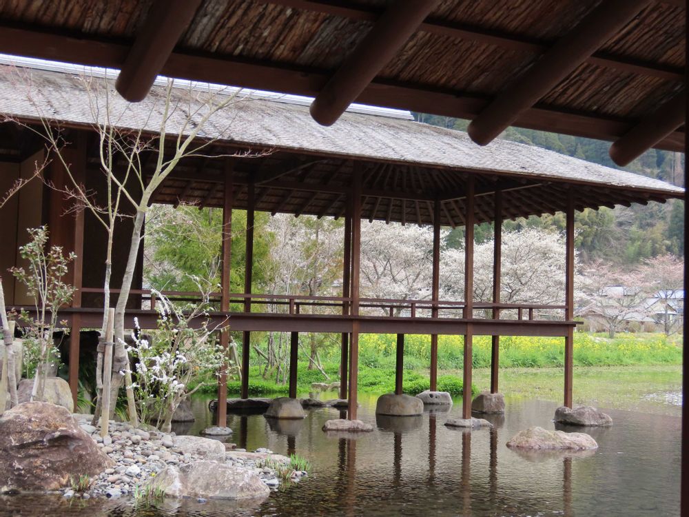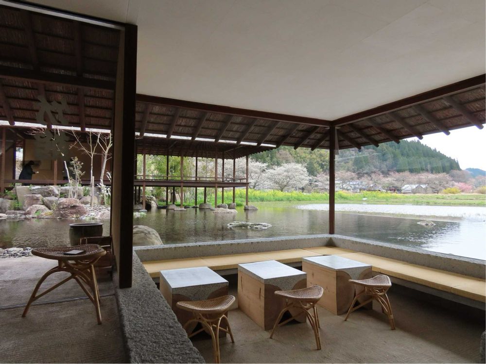 小国杉を使って作られ、能の舞台を持ち、里山に溶け込む「和」の雰囲気が素晴らしく、惚れ込みました💕💕