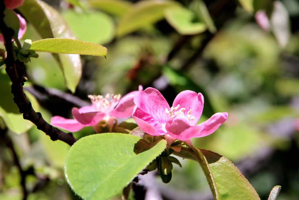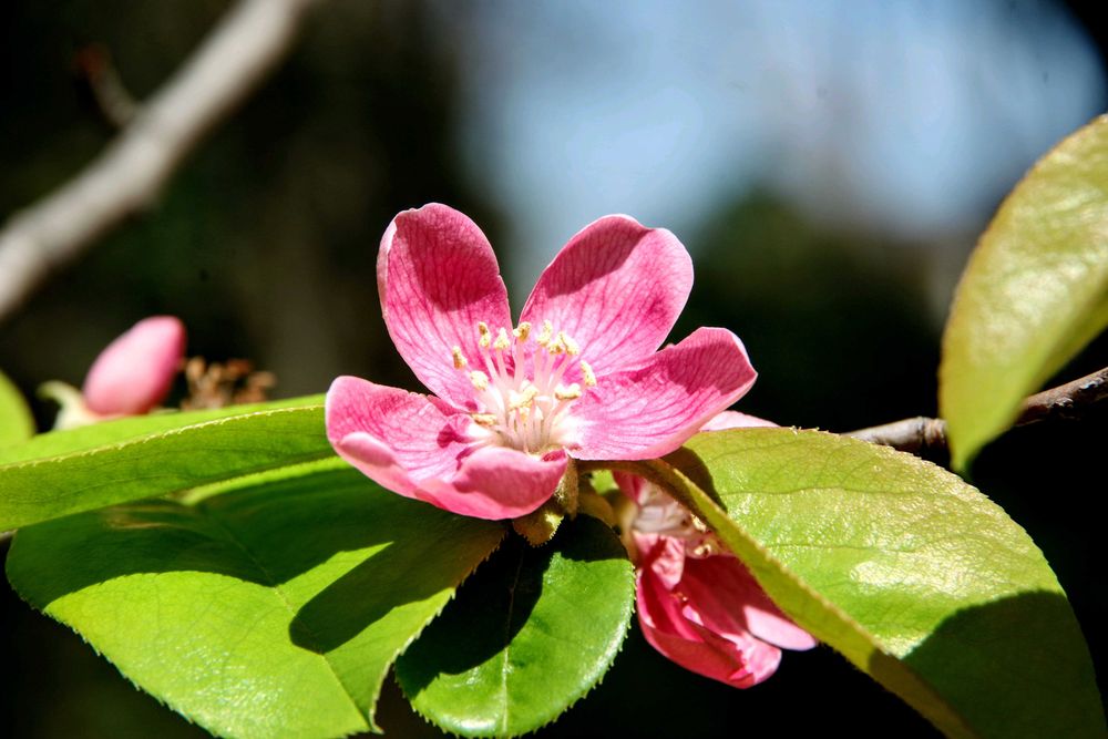 その木々の下で、カリン(花梨)がそっと花を咲かせていました
