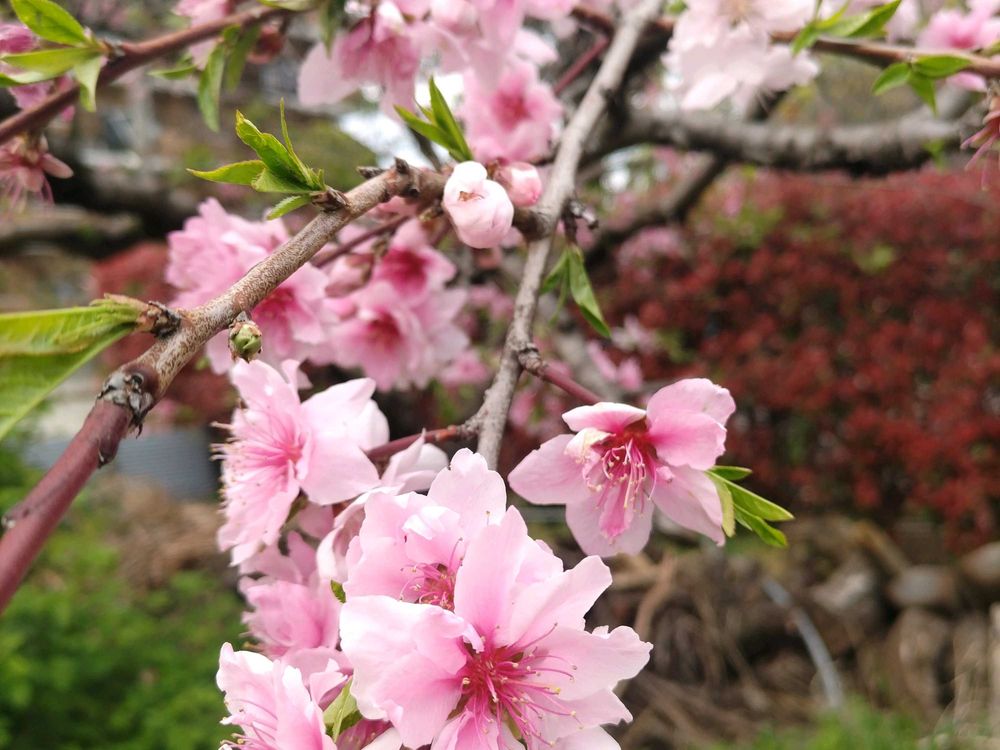 桃の花です。夏になれば小さな桃が食べられます。花ニラがキレイなのでまた一枚。