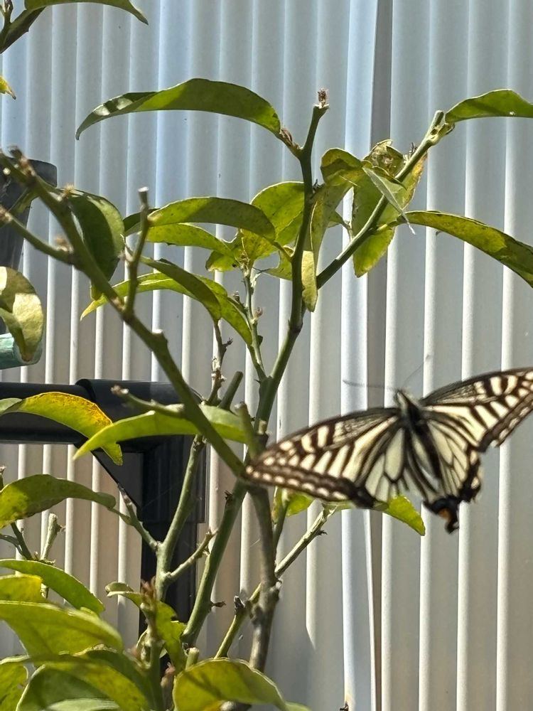 アゲハ蝶が初?来店 店(新芽)はまだ開いてませんよー