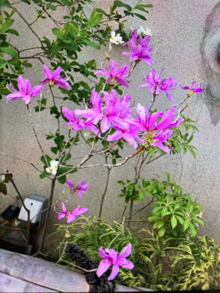 我が家で今年は 白いバーベナを赤系統のペチュニアの真ん中に入れました。