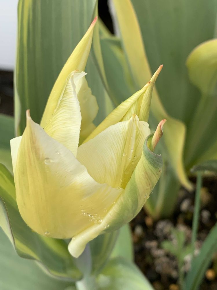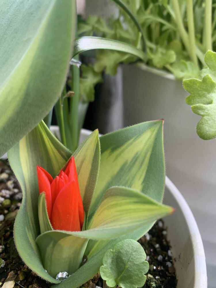 我が家も斑入りのチューリップを植えてみたのですが、普通の緑の葉っぱが生えてきました🤣