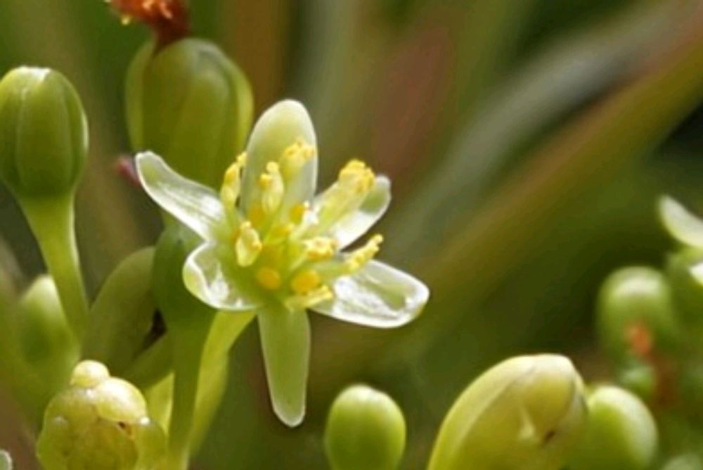 花は約1㌢ 花被片は黄緑色6個、長さ5㍉