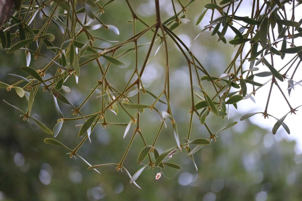 ヤドリギって木の上の方で固まりにしか見えないけど、こういう涼しげな葉なのね~🌿