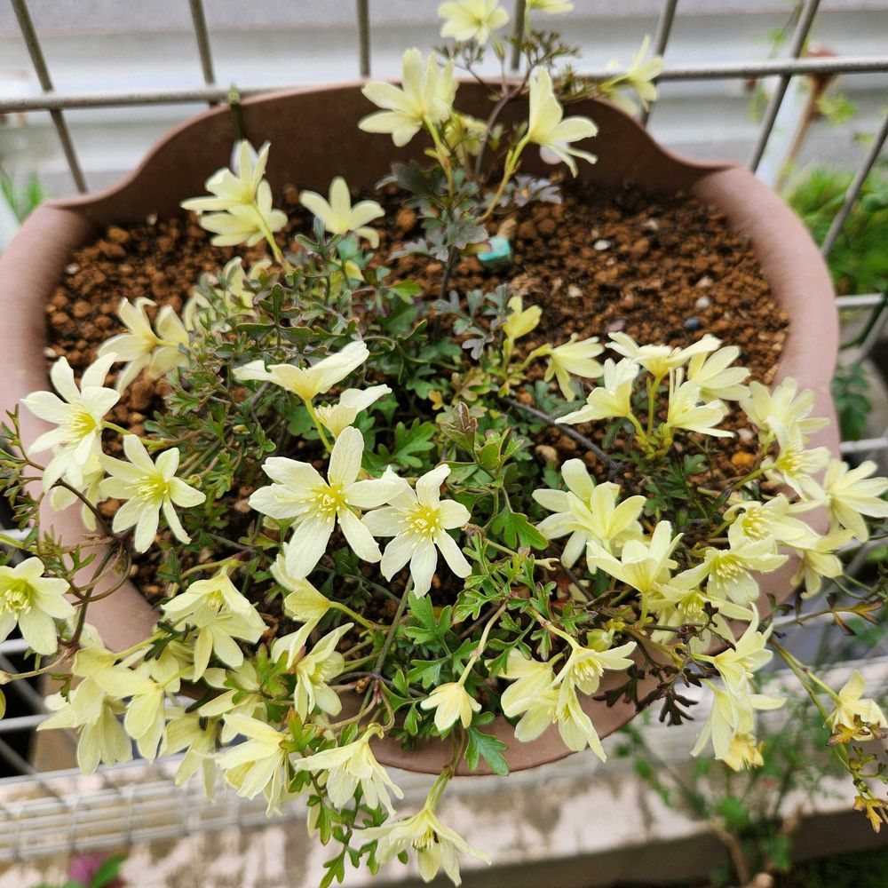 先週雨がちでしたが暖かくなってクレマチスペトリエイが満開!