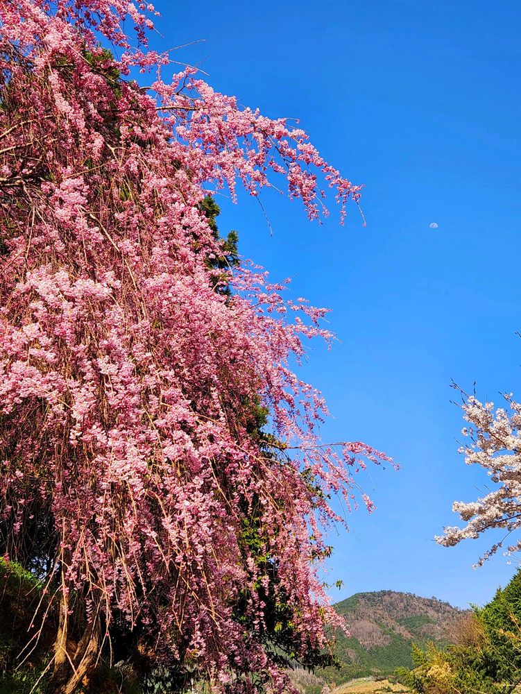 山の上の集落にみごとなシダレサクラ。