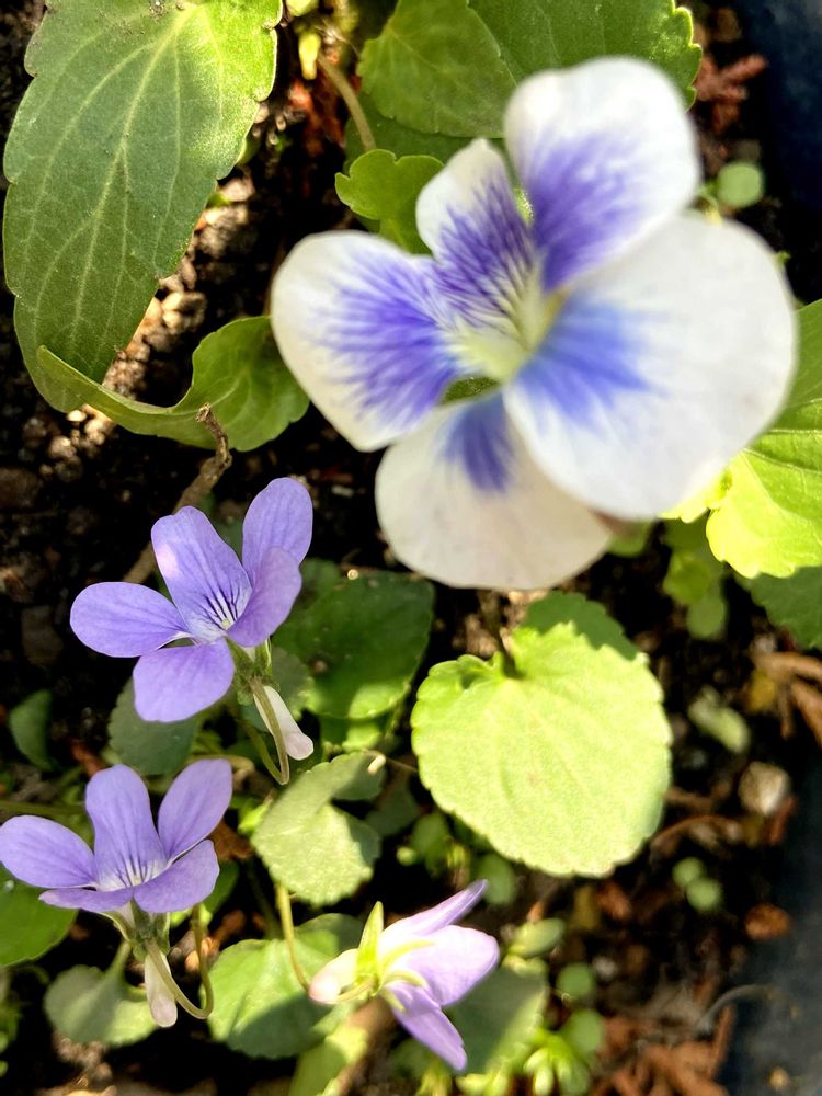 我が家のデッキの植木鉢🪴になんとまぁ可愛いニュースミレさんが顔出しです💓