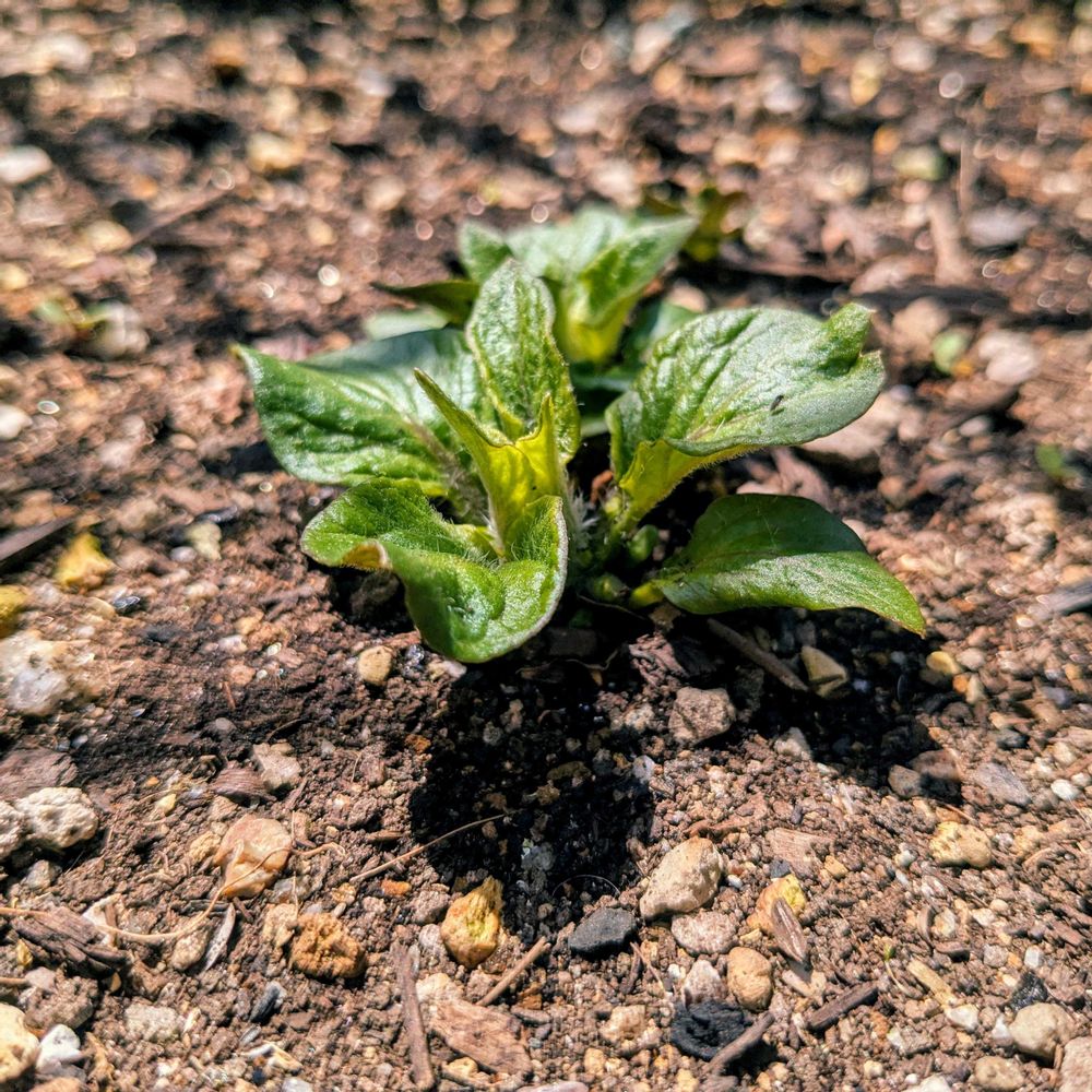 じゃが芋(メークイン)を植えて1ヶ月ようやく葉がでてきました🥔