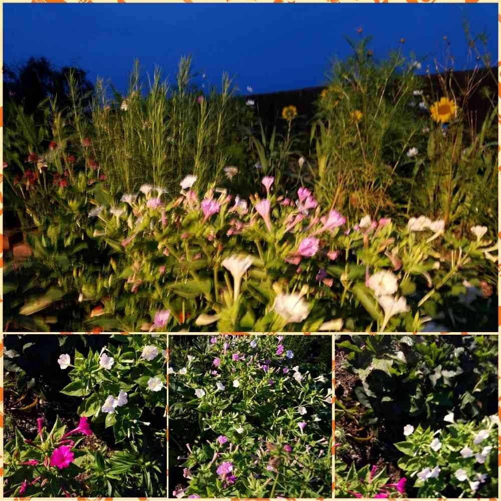 夜咲いているのを見たくて昨夜撮りました…オシロイバナたちです。