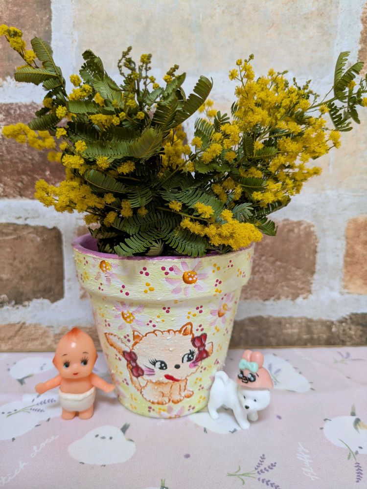 かもめさんが贈ってくれたミモザのドライフラワーを入れたらピッタリ♡(⑉︎• •⑉︎)♡ᔆᵘᵗᵉᵏⁱ💛💛💛