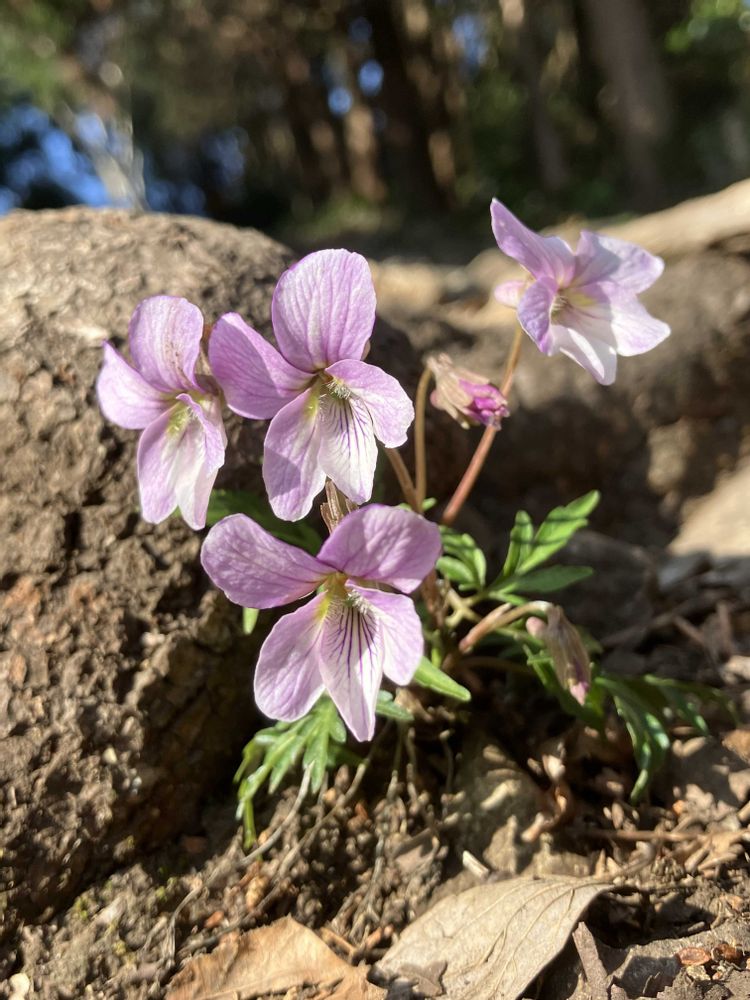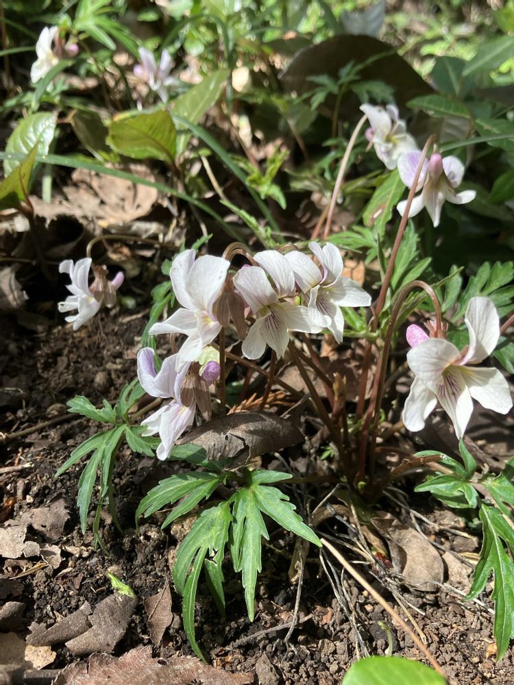 今回アップしたのは山で見つけたものですが、道端にもこの季節はスミレがいっぱい咲いていて、つい目と足が止まります😊