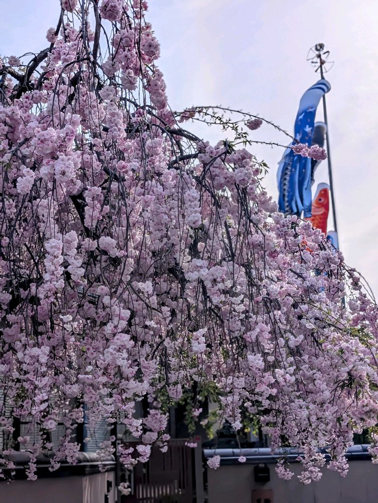 枝垂れ桜と鯉のぼり🎏(≧∇≦)b我が家ではもう揚げないけど…。