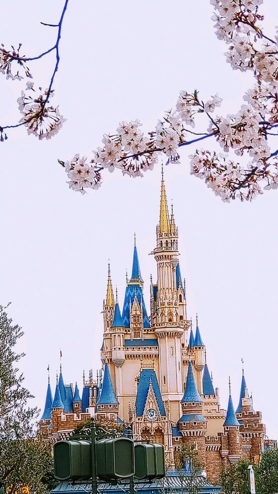 わぁー🎵素敵な🌸とお伽の国、夢の世界(ディズニーランド)のお城とのコラボに、何とも言えない魅力を感じます~😀(⌒‐⌒)🎵