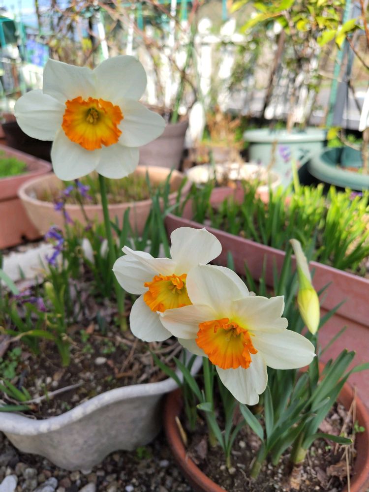 畑に植えてある水仙はもう少しですが、鉢植えの水仙が咲き始めました💛🤍✨