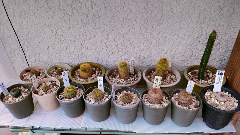 さん 虎の子 は10年程前ダイソウで 小人丸はサボテン園 両端の2つはメルカリで😅見つけました、ナカナカホムセンでは見かけないですね、
