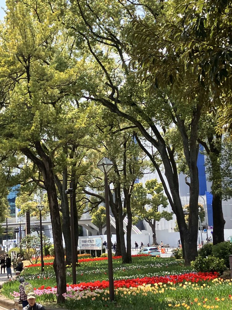 横浜公園のチューリップが見頃になっています🌷🌿🌷人がたくさん