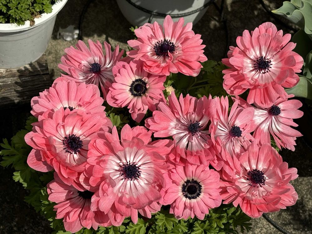 うちの濃い紫のアネモネ、茎がめっちゃ短くて、でも、根元に蕾がたくさんあって、葉っぱの下の方ででっかい花を咲かせてるんですけど😅なんでなの?