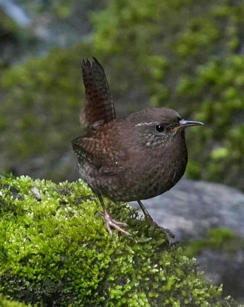 苔が、今が一番綺麗かな❓その苔の上に出てきてくれたミソサザイくんです。