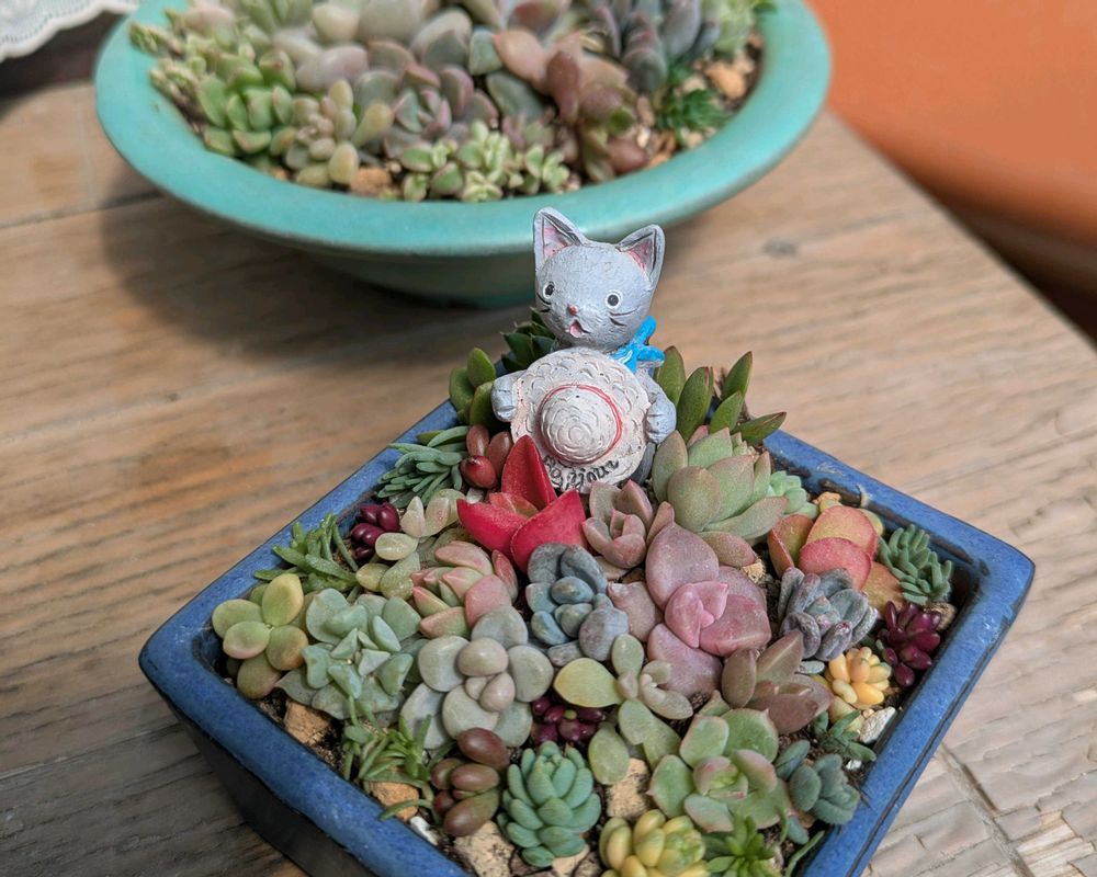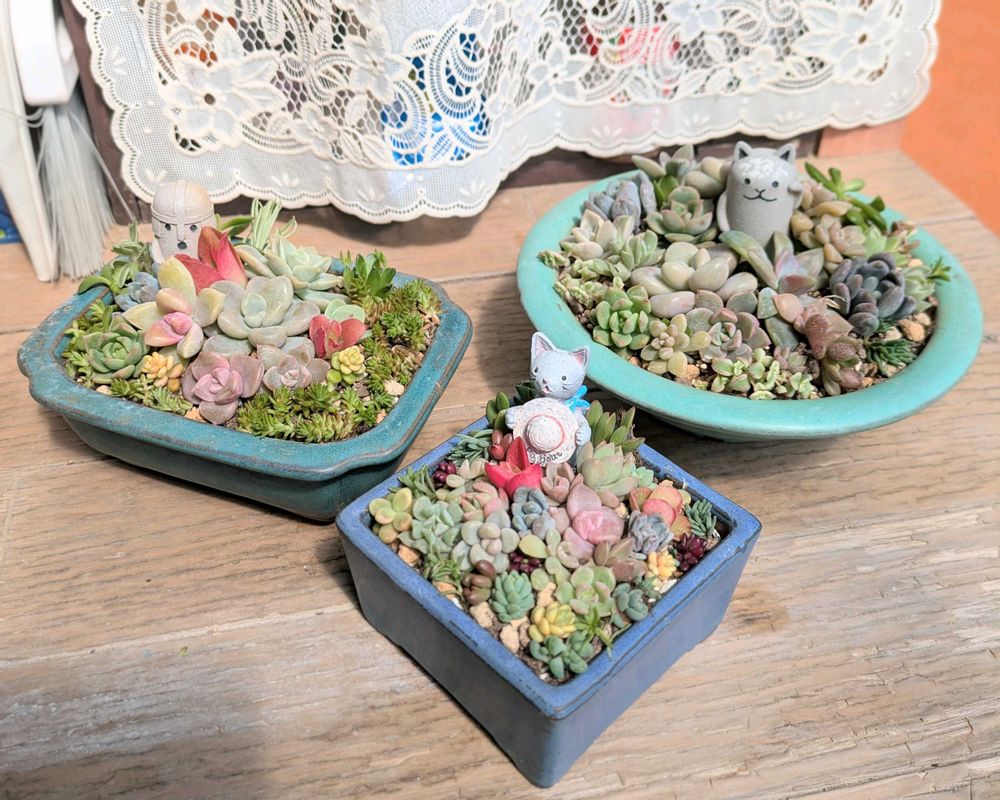 小さな盆栽鉢がとても安く買えた(200円〜350円)ので、多肉を寄せ植えしました✨