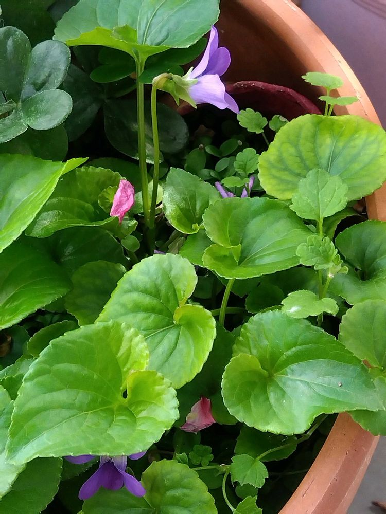 スミレの葉っぱが伸びてきてお花を隠してくれます♪