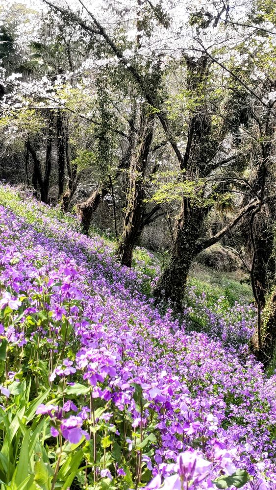 薄紫色のハナダイコンが、たくさん咲いていましたよ。😄紫色の菜の花ですね。😸
