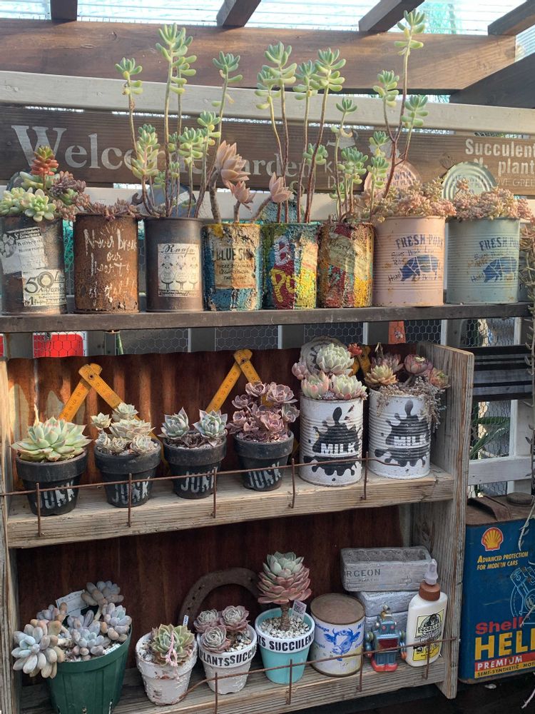 うちにも多肉棚があるけどまとまりがなくて😅リメ缶や鉢も可愛いしとても参考になります🎶😄