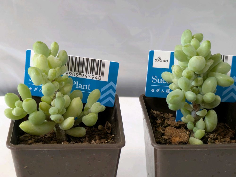 ダイソーにこんなに可愛い多肉が置いて有るのですか?家の近くのダイソーは、全然ダメ。いつも良いのが無く、干からびています。可哀想な多肉です。