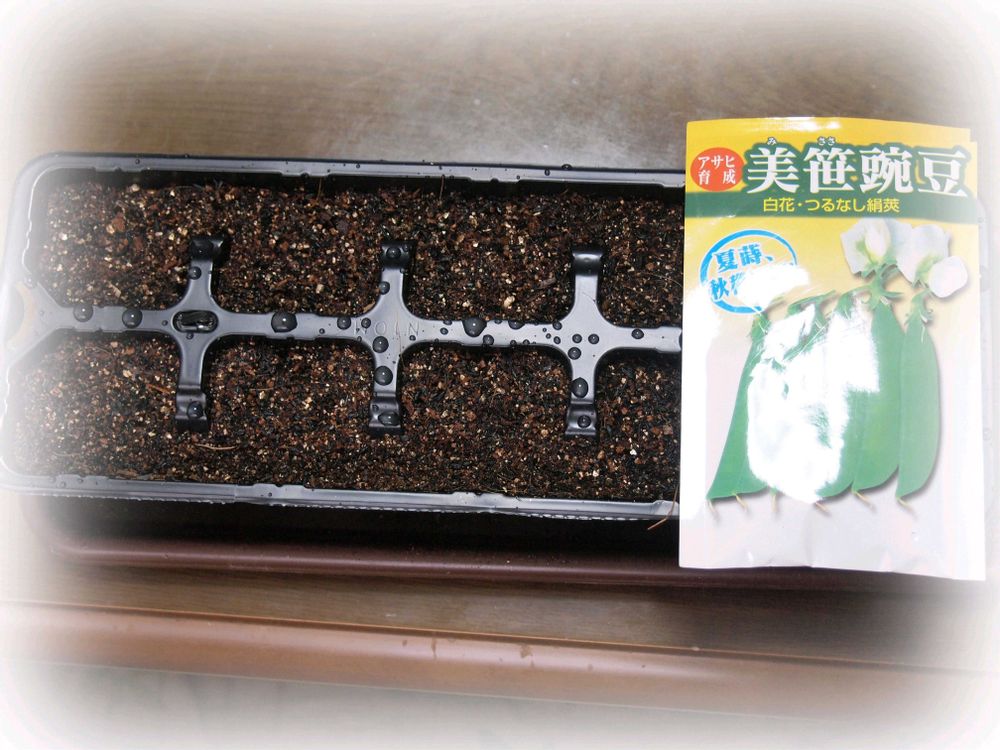 通常はエンドウは直まきするんですが、大きめセルトレイに10株分まきました。
