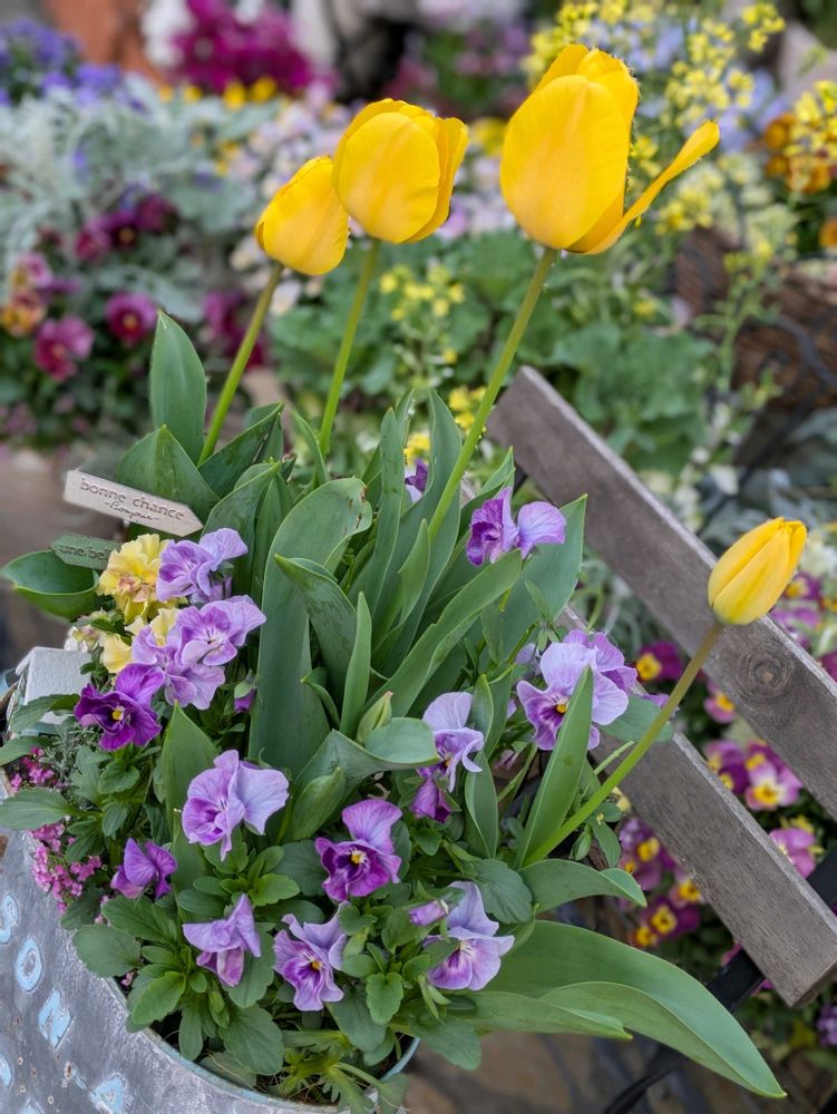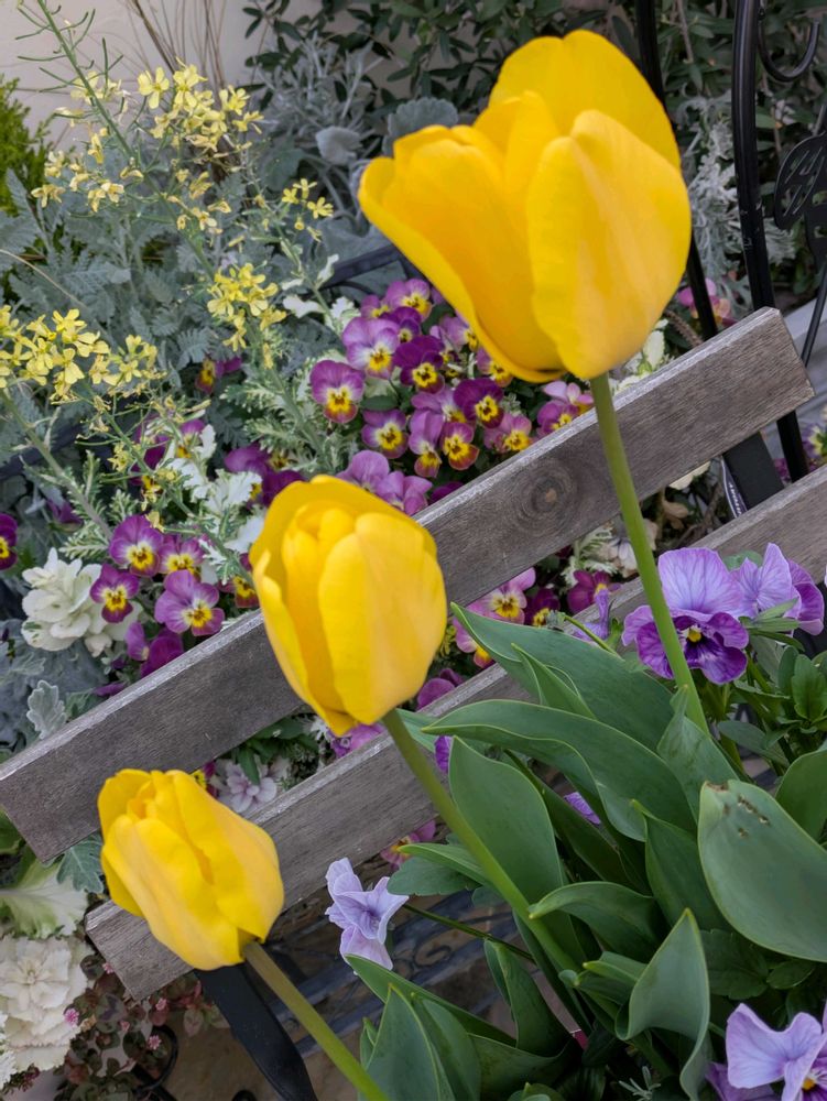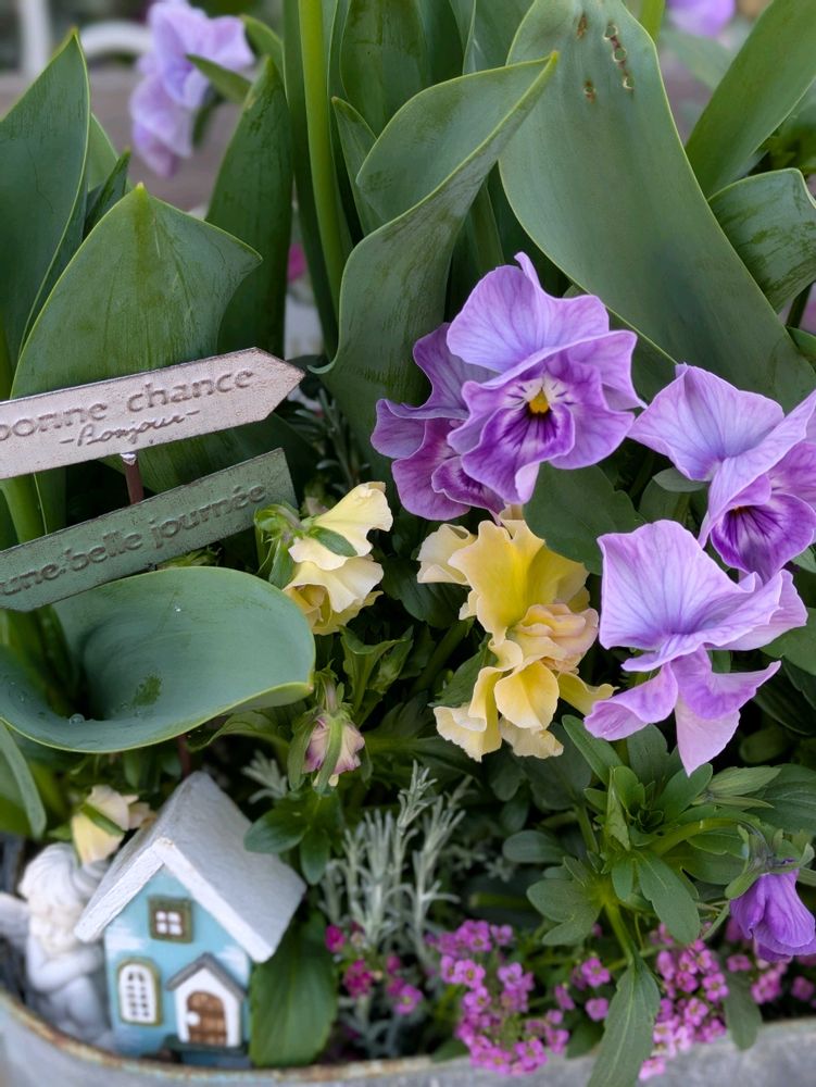 昨年の秋のチューリップの球根植えとパンジーのダブルデッカー寄せ💛💜💛