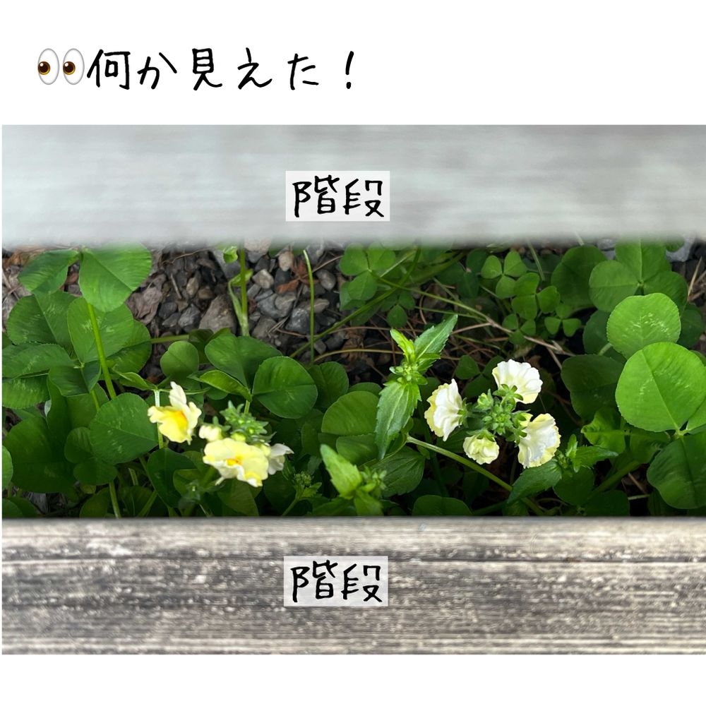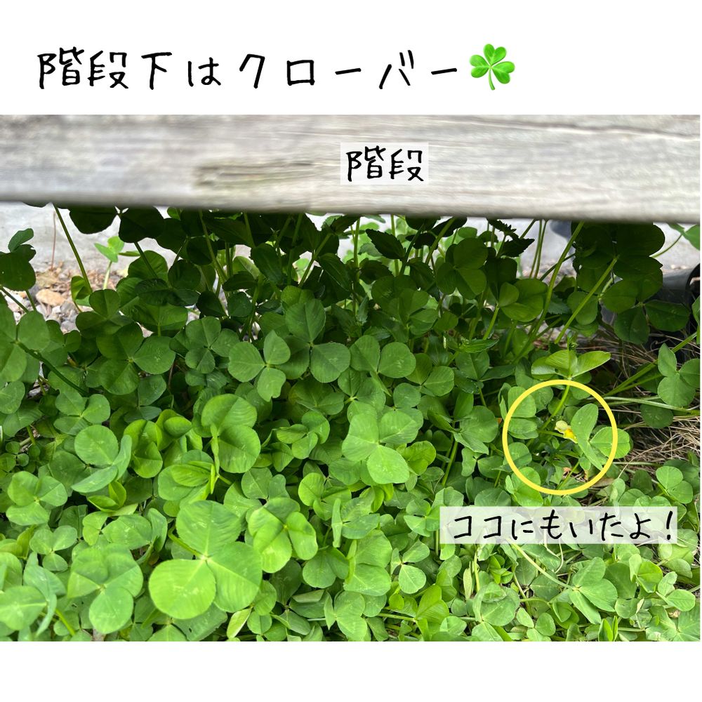 3️⃣ 階段下をのぞくと、クローバーばかりで何も見えません。(後から画像見て1つ見つけました)