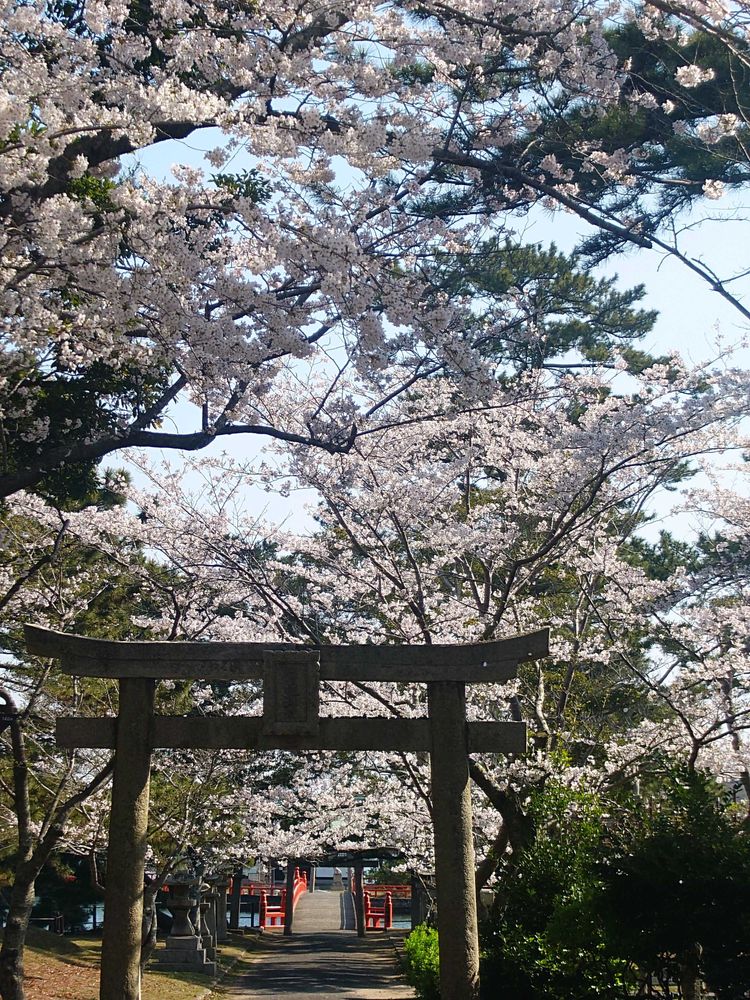 園内には、常盤神社もあり、鳥居⛩️と🌸がマッチしていました。