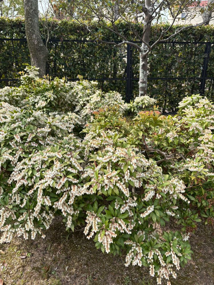 アセビ、すずなりに咲いていてかなり豪華でした。葉っぱも斑入りですね。