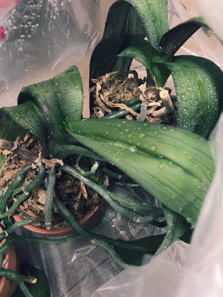 前職場で、去年一度復活させた胡蝶蘭。が、再び可哀想な姿に…😭許可を得て、引き取ってまいりました。再び復活なるか?