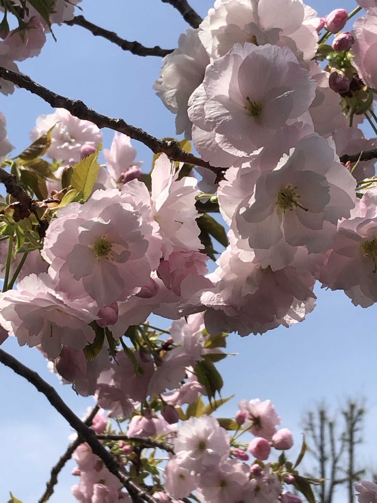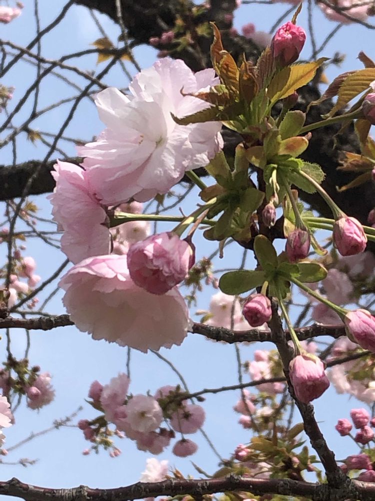お花の色が、ピンク色から白色へ変化する八重桜「一葉」をパチリ!📸🌸😄🤗🌞✌️